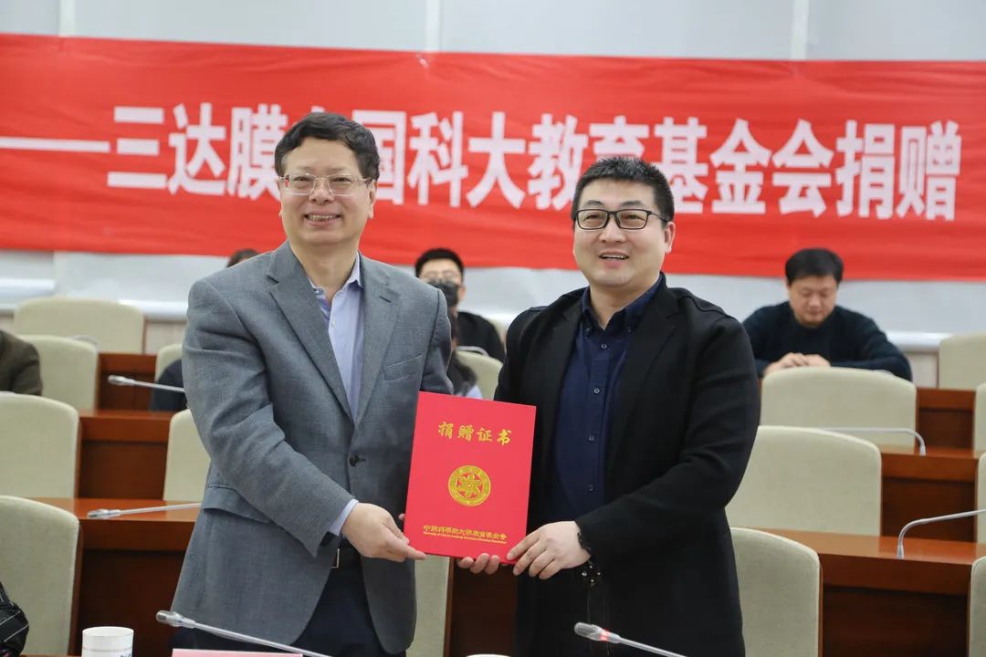 最后,洪永淼教授與趙碩秘書(shū)長(zhǎng)共同為三達(dá)膜頒發(fā)捐贈(zèng)證書(shū),大家“云”合影留念。